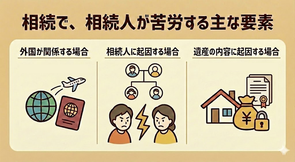 相続で、相続人が苦労する主な要素