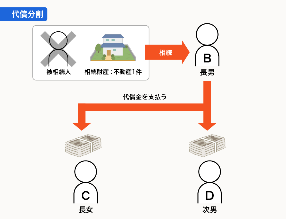 長男が自宅の土地と建物をすべて相続する代わりに、他の兄弟に一定の金額(代償金)を支払う、というようなケースです。