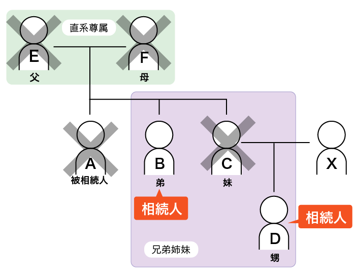 ○BとDは第3順位の相続人です。 - Cの配偶者Xは相続人ではありません。