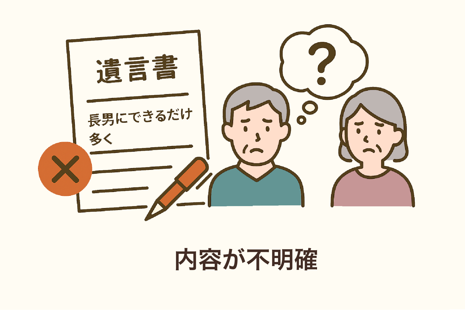 内容が不明確な遺言書の例として、「長男にできるだけ多く財産を渡す」といった記載があります。