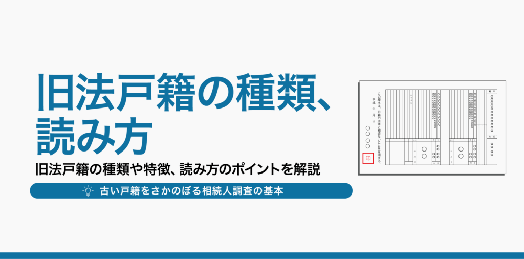 この記事では、明治19年式から大正4年式までの旧法戸籍の種類や特徴、そして読み方のポイントを解説します。相続人調査や戸籍謄本の収集に役立つ知識を身につけていただけるでしょう。