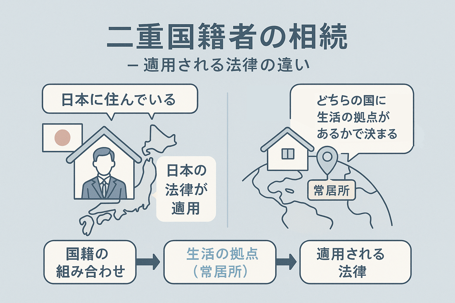 つまり、二重国籍者の相続では、国籍の組み合わせと、亡くなった人がどの国に生活の中心を置いていたかが重要な判断基準になります。