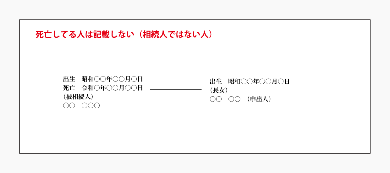 被相続人と現在相続人となっている人だけを記載します。