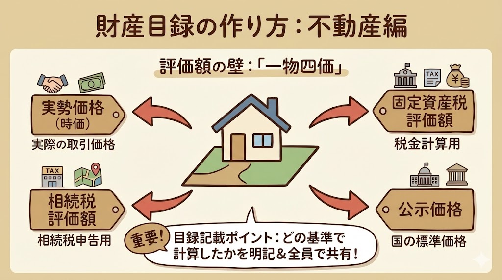 4. 財産目録は、評価額の正確性よりも「基準と根拠を明記して共有すること」が大切。
