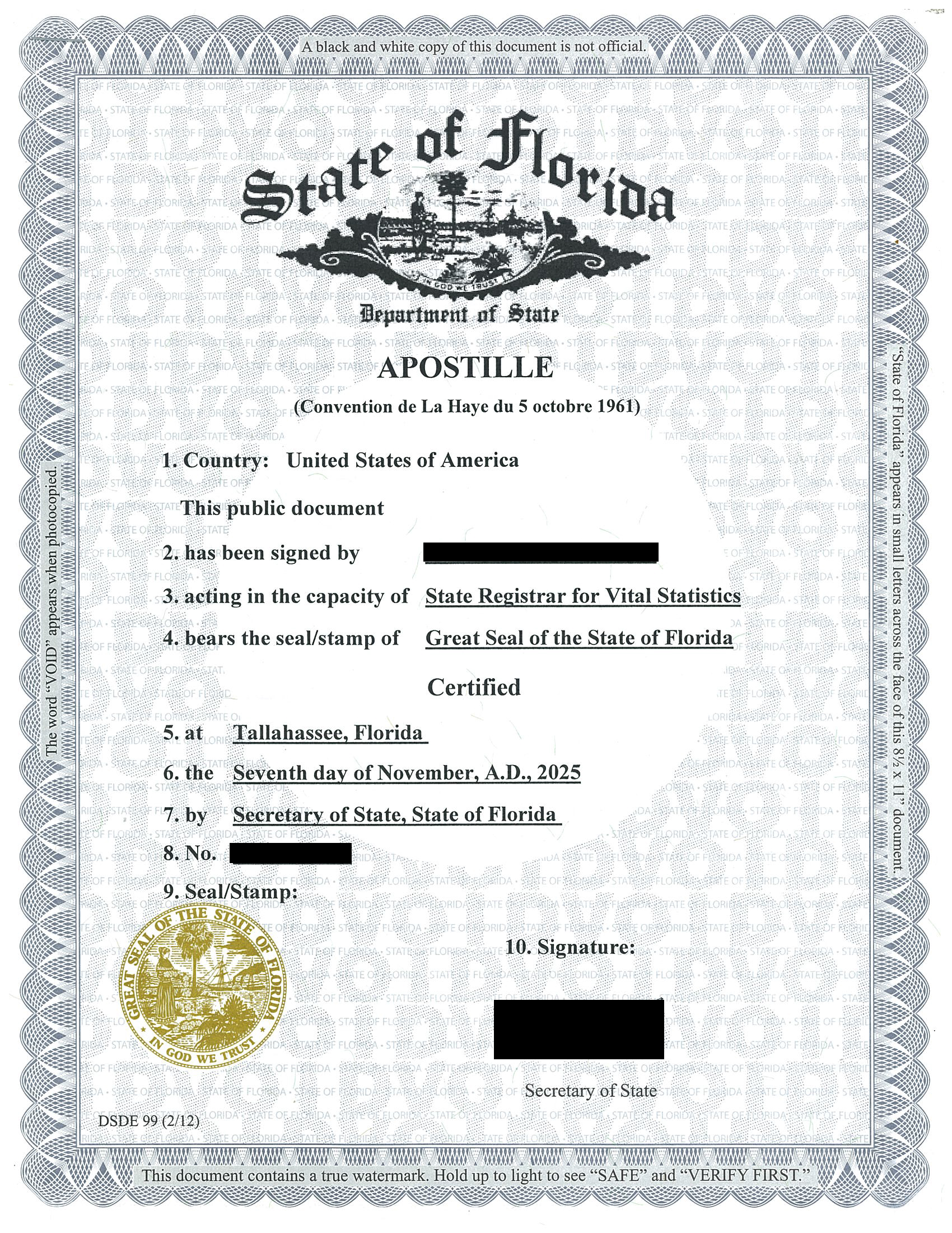 通常、証明書の発行元(保健局など)と、アポスティーユの発行元(州務長官)は異なります。