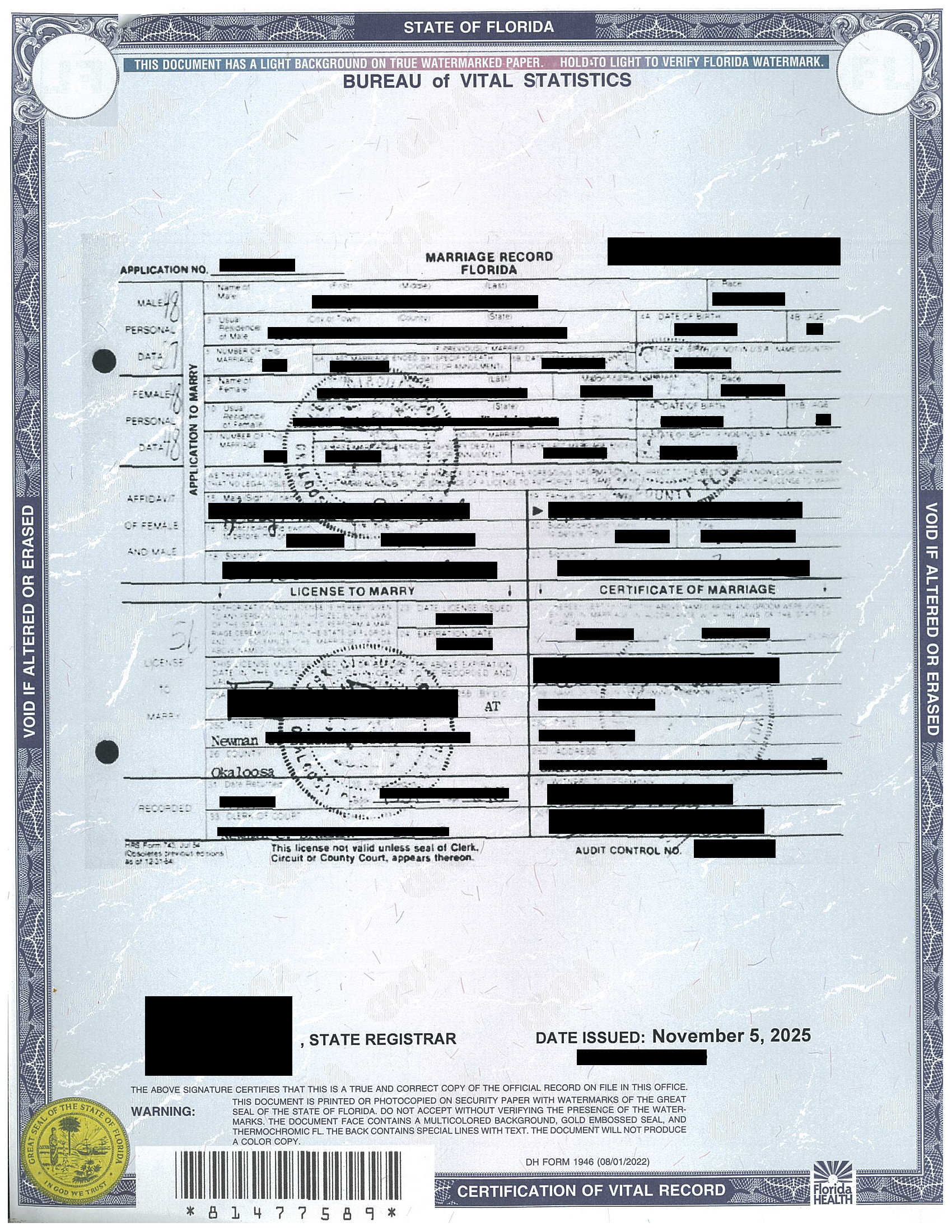 アメリカにおける公的証明書(Vital Records:出生、婚姻、離婚、死亡証明書)の取得資格は、州法(State Law)によって定められているため、州ごとにルールが大きく異なります。各州の規定を調べたうえでお試しください。