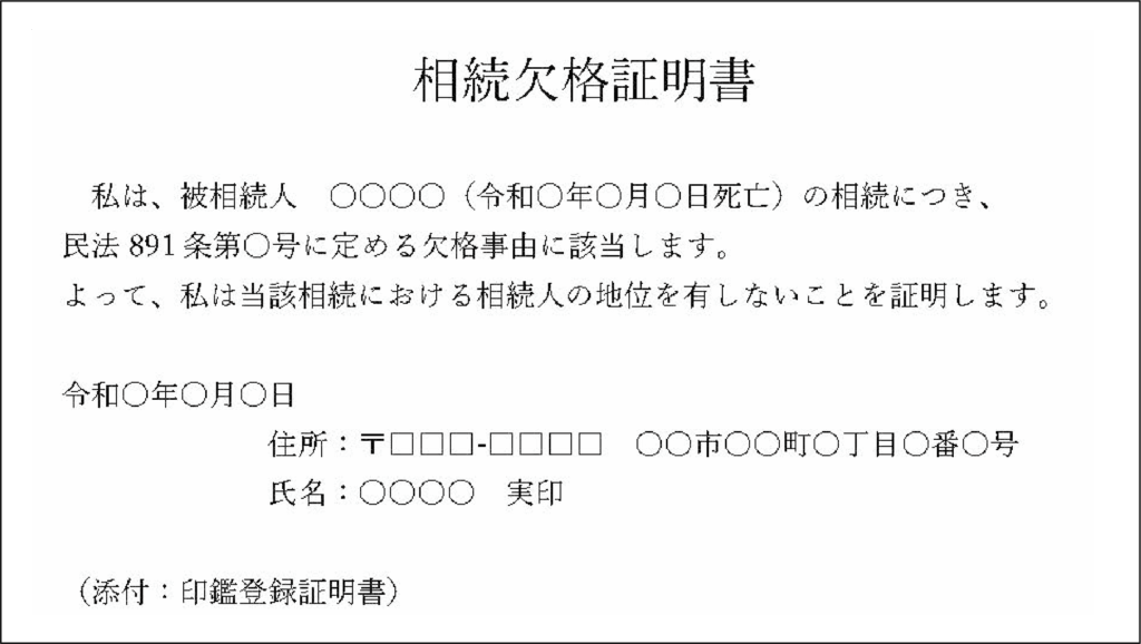 1.欠格者本人の「相続欠格証明書」+印鑑登録証明書